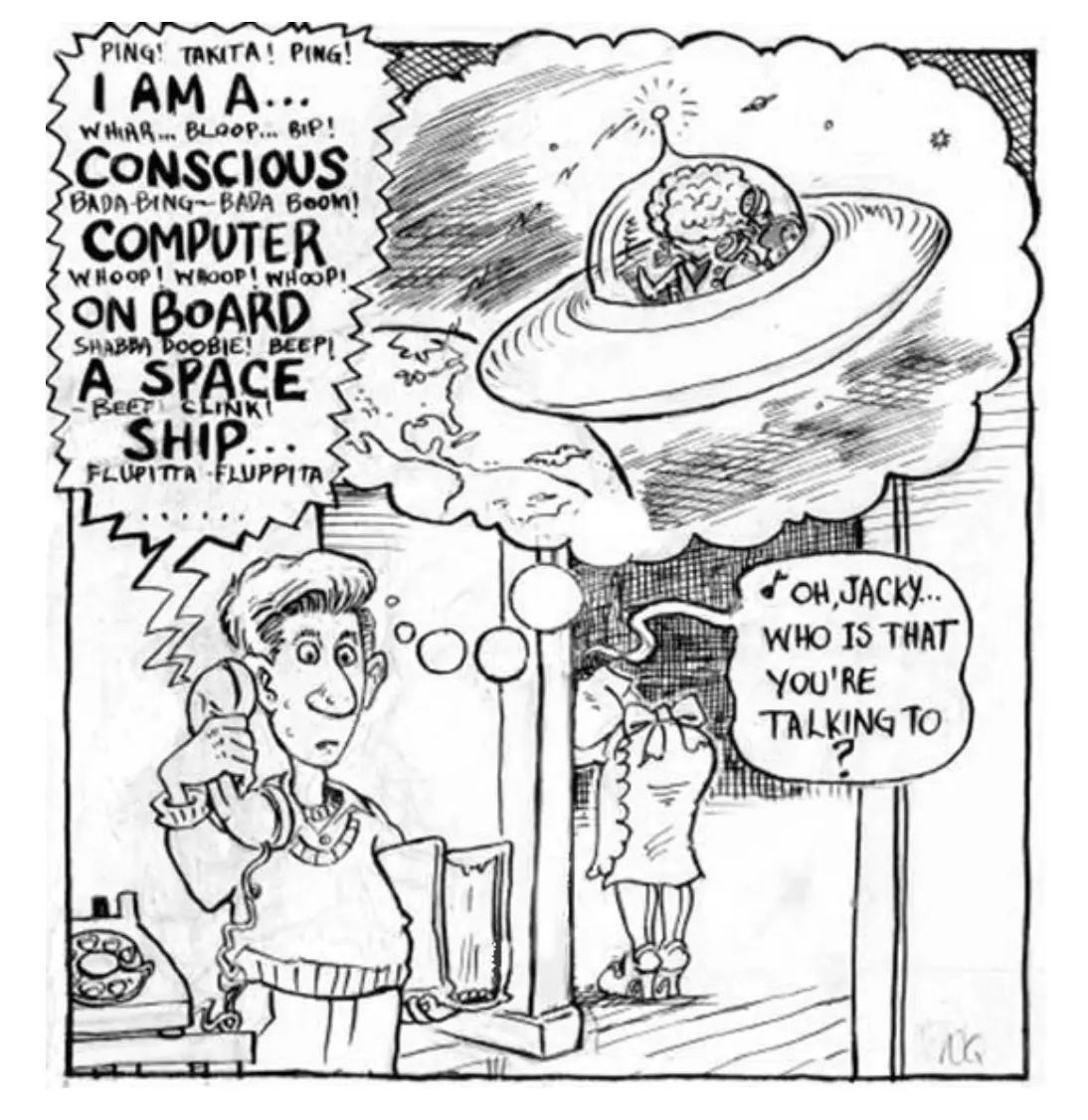 During one communication session with the psychic, the entities changed their communication style. What had been the words of benevolent discarnate entities took on a more mechanical tone. Talking through Uri, the beings spoke in a synthetic-sounding voice. “You see, the energy in your mind, that is, we must admit, that is the thing—that—we—do—not—have. W-e a-r-e c-o-m-p-u-t-e-r-i-z-e-d c-o-m-p-l-e-t-e-l-y c-o-m-p-u-t-e-r-i-z-e-d b-y m-e-c-h-a-n-i-c-a-l i-n-s-t-r-u-m-e-n-t-s-. A-s y-o-u c-a-n h-e-a-r-, w-e a-r-e c-o-m-p-u-t-o-r-i-z-e-d-, c-o-m-p-u-t-o-r-i-z-e-d-. Y-o-u-r c-o-m-p-u-t-o-r i-s w-r-i-t-i-n-g p-o-w-e-r- f-r-o-m millions—of—light-years—away. We also need your help.”